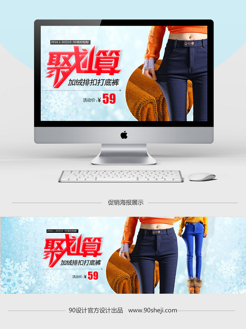 全屏海报 banner 海报 聚划算 促销 冬季女装 服装 女装 打底裤 加绒 牛仔裤 简约风