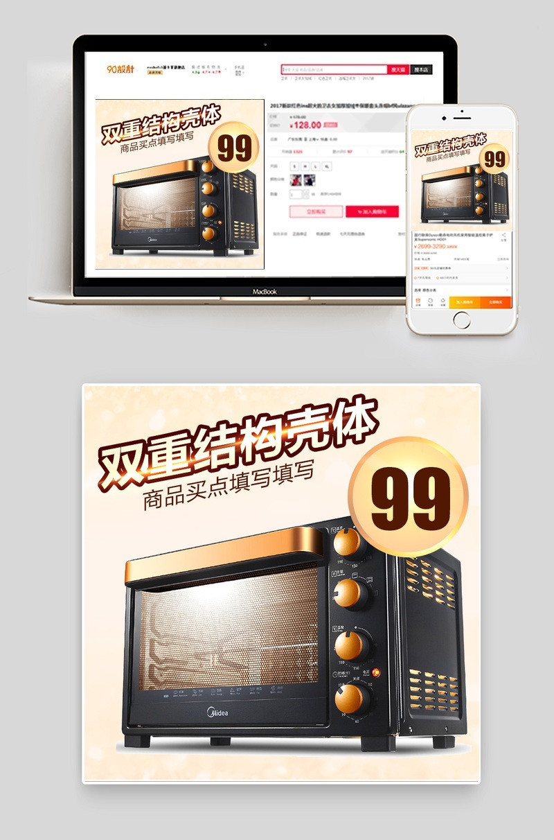 简约小家电电烤箱直通车主图PSD模板