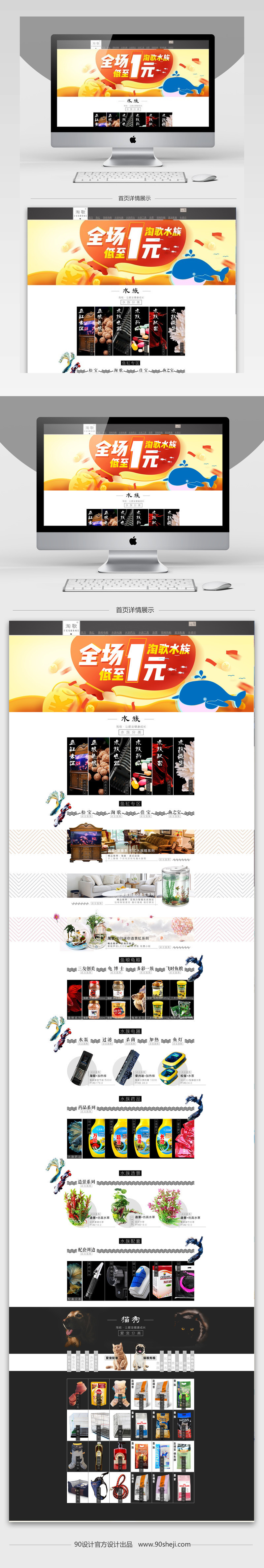 花纹灰色背景 金币 PC端店铺首页 通用模板 淘宝 天猫 现代 扁平 简约 宠物用品 水族 店铺 首页 专题页 活动页 促销 psd 圈圈