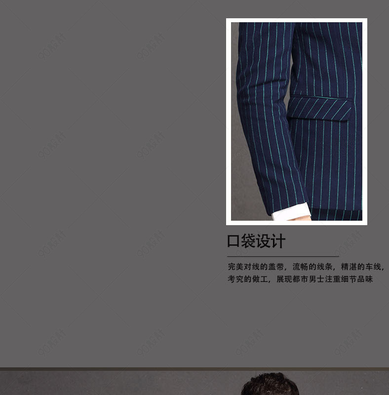 男装详情页 西服套装详情页 正装 商务套装 休闲套装 简约 大气 深色背景 条纹 手绘箭头图标