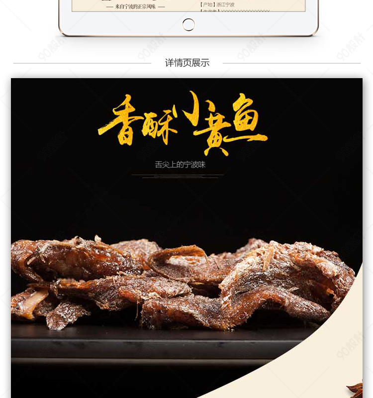 小黄鱼 天猫 淘宝 详情页 psd分层 黑色背景 零食 海鲜 配料 美食 食品