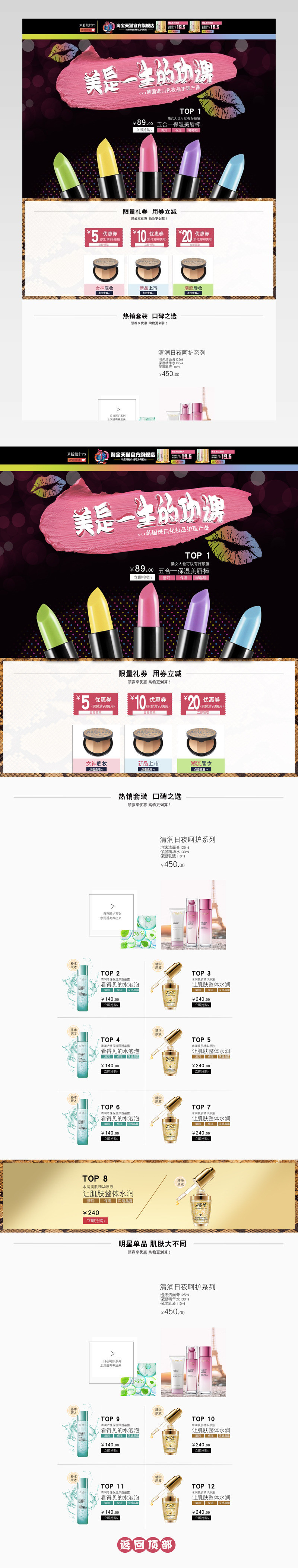 简约 唯美 潮流 化妆品首页 口红首页 唇彩 护肤品 彩妆 唇印 水花