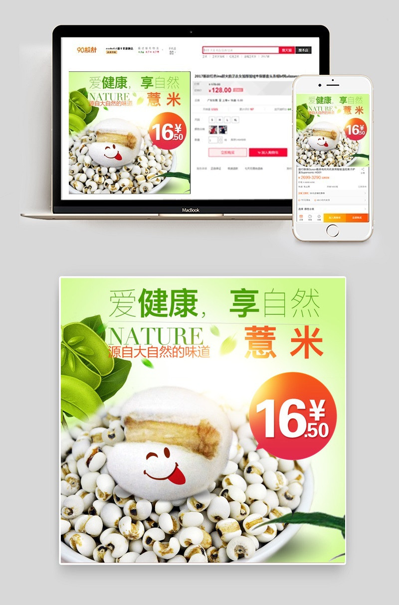 90设计提供绿色清新自然淘宝薏米直通车主图设计素材下载,高清PSD格式。【通用】多类目可用,产品、模特均可替换。【PSD】精细分层,贴好片。【设计】由90设计师独家设计。点击右侧免费下载按钮可进行绿色清新自然淘宝薏米直通车主图淘宝设计素材高速下载。