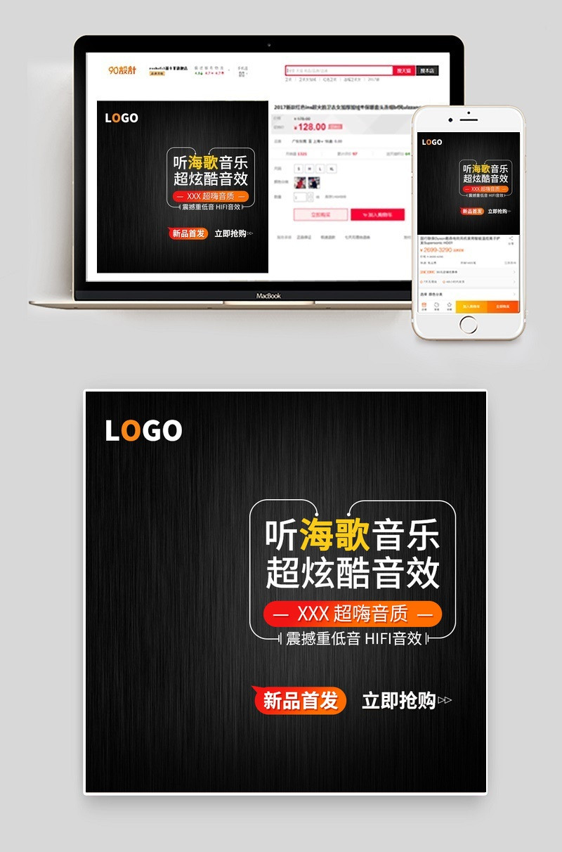炫酷 重低音 hifi音效 数码产品主图 天猫 淘宝 直通车图 耳机主图 耳线 音响 音箱 大气 有质感的背景 新品直通车图