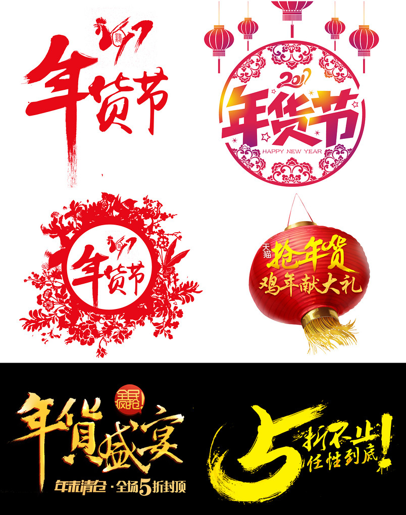 淘宝天猫2017鸡年年货节 淘宝天猫 素材logo 年货盛典 年中大促 中国风 红色 psd平面设计 蓝天