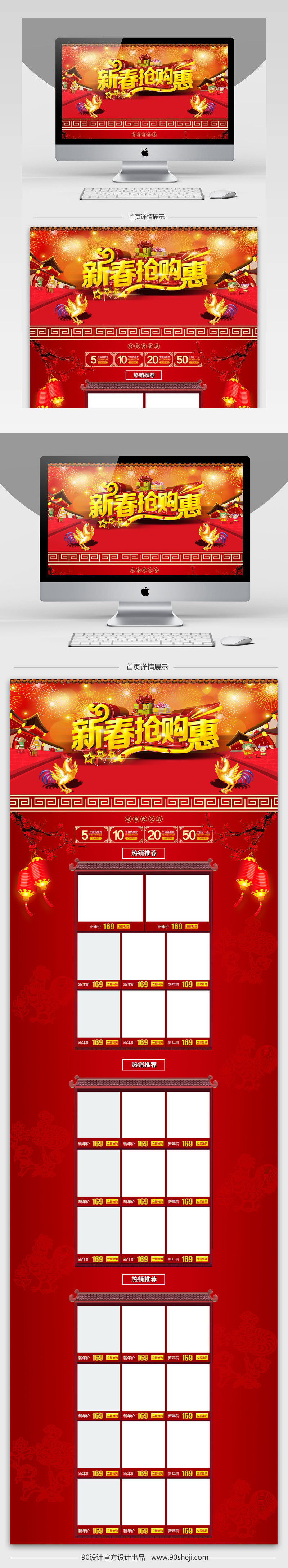 90设计提供淘宝喜庆年货节店铺首页psd模板设计素材下载,高清PSD格式。【通用】多类目可用,产品、模特均可替换。【PSD】精细分层,贴好片。【设计】由90设计师独家设计。点击右侧免费下载按钮可进行淘宝喜庆年货节店铺首页psd模板淘宝设计素材高速下载。