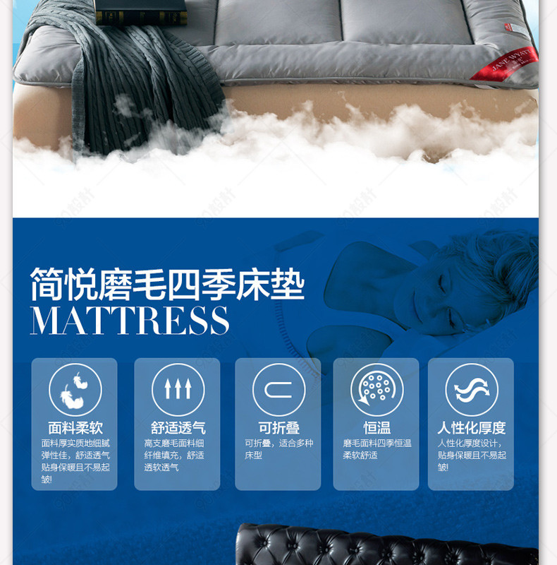 唯美清爽淘宝天猫四季通用床垫详情页psd