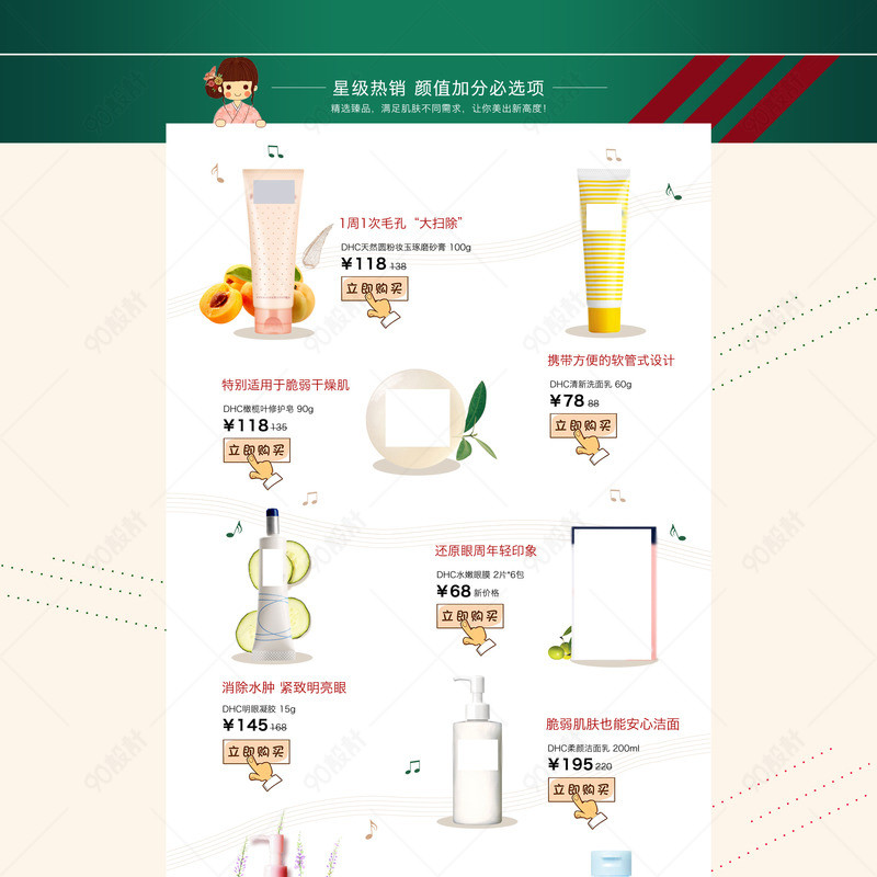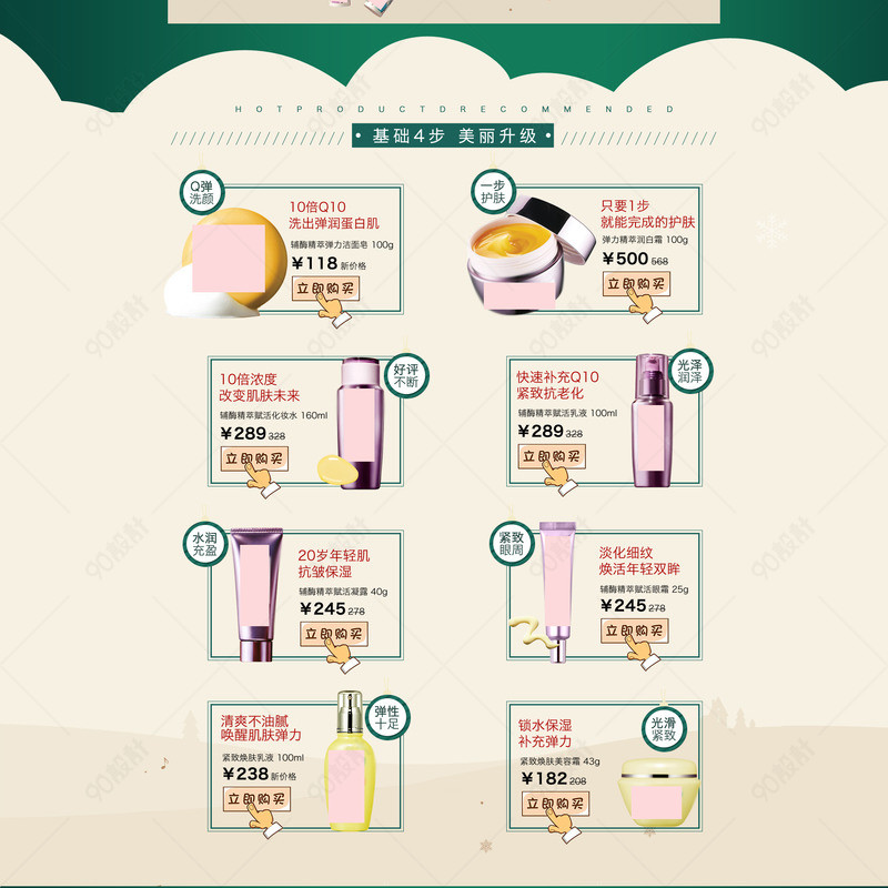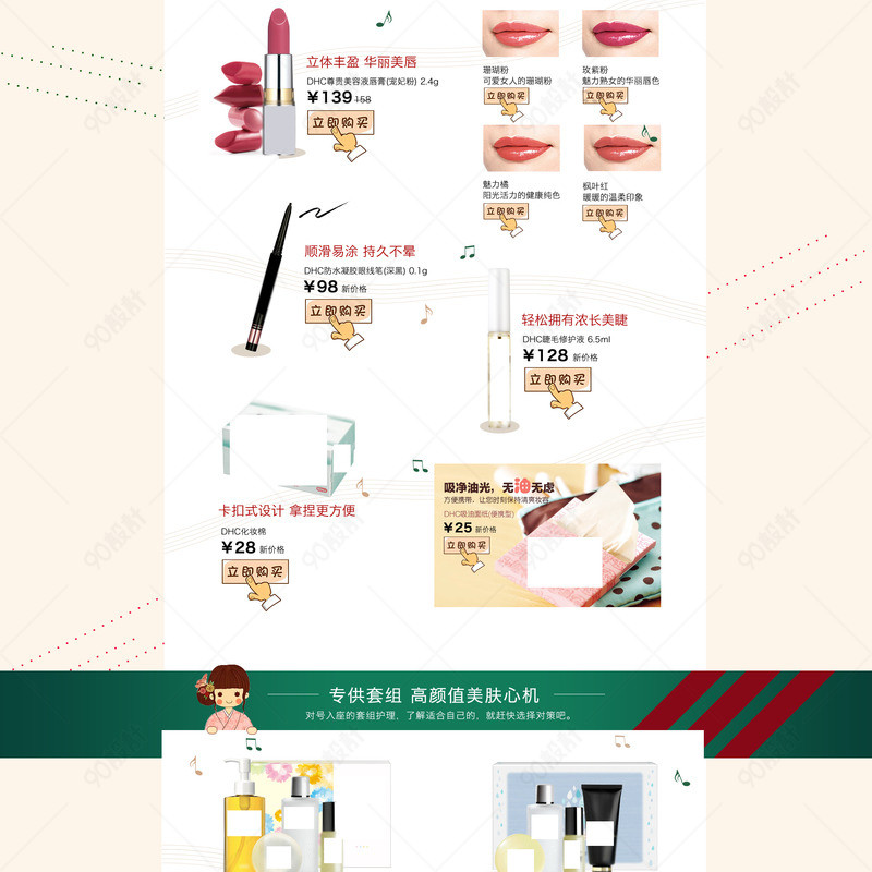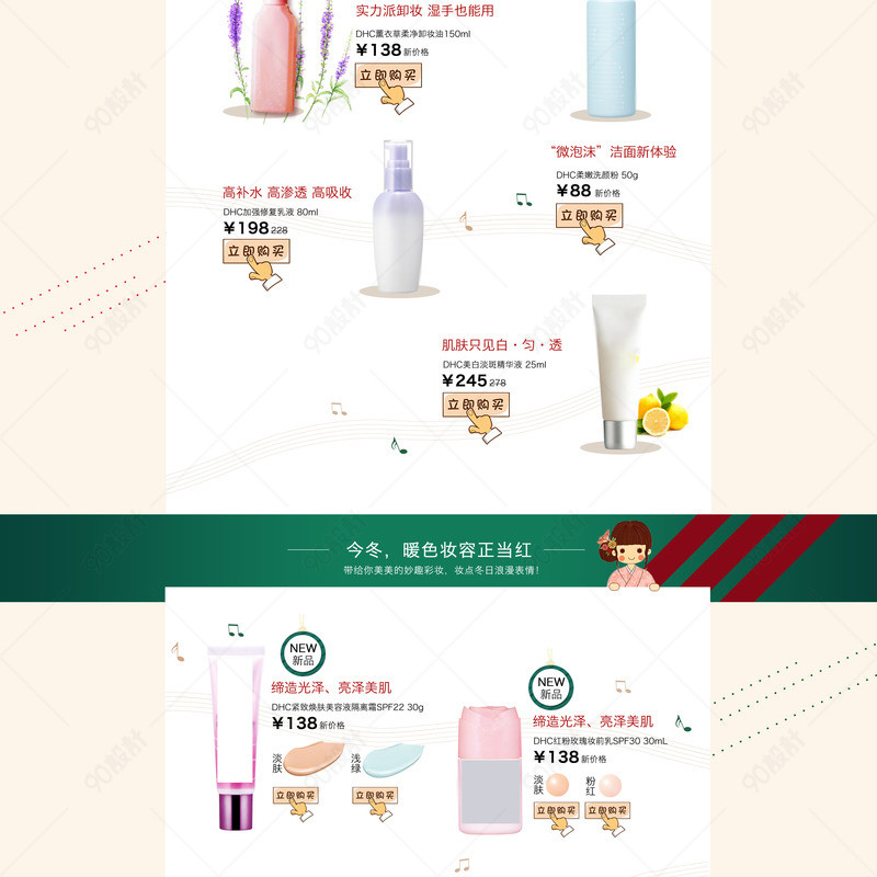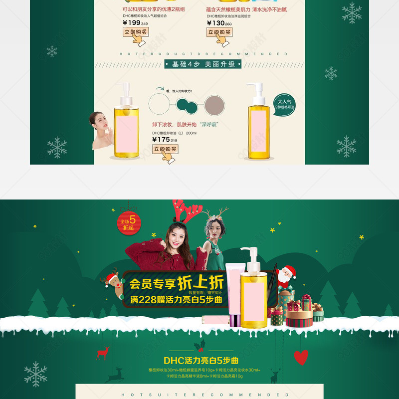 90设计提供首页装修化妆品圣诞节设计素材下载,高清PSD格式。【通用】多类目可用,产品、模特均可替换。【PSD】精细分层,贴好片。【设计】由90设计师独家设计。点击右侧免费下载按钮可进行首页装修化妆品圣诞节淘宝设计素材高速下载。