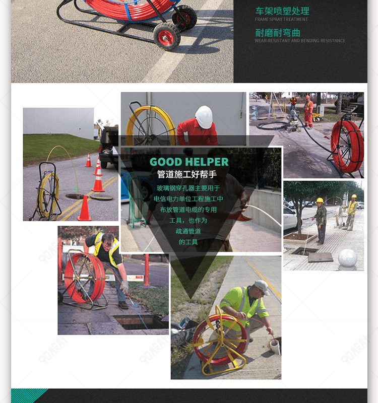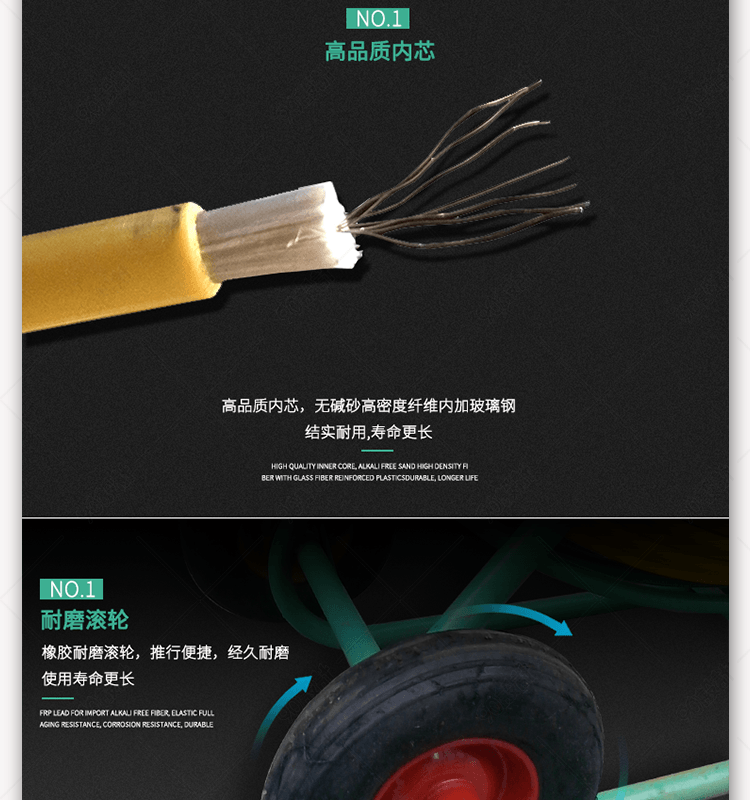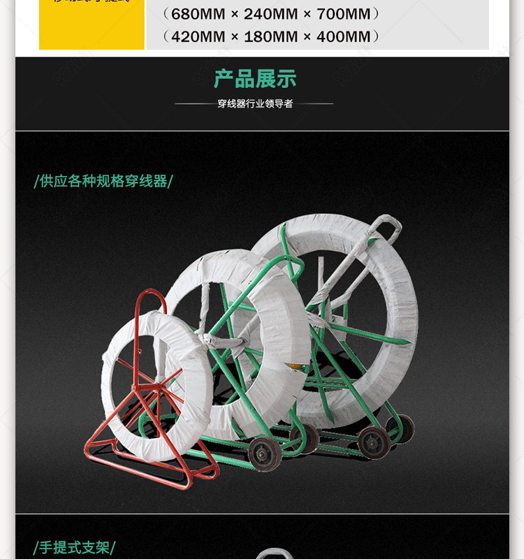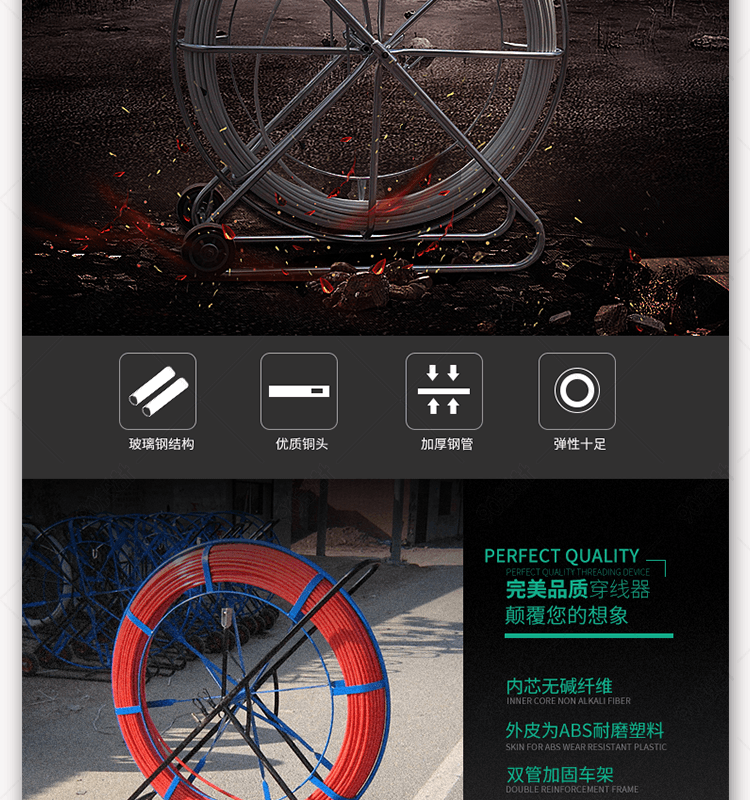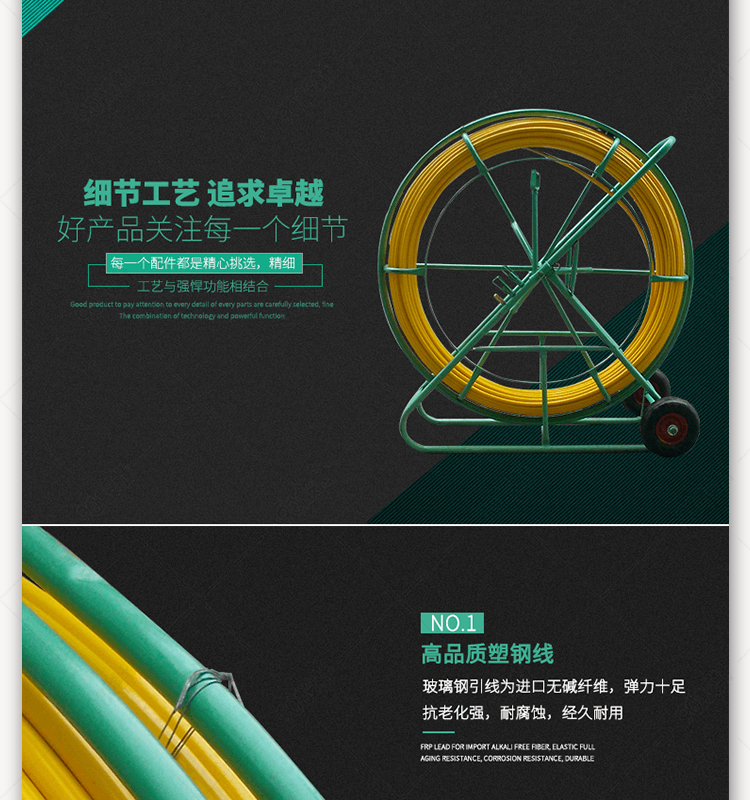 简约风 大气风 简洁风 淘宝 天猫 黑色背景 电力穿线器 穿线器 电力装备 电工穿线器 拉线器 玻璃钢 穿孔器 黑绿拼色 psd模板 素材模板 详情页 鸟布斯
