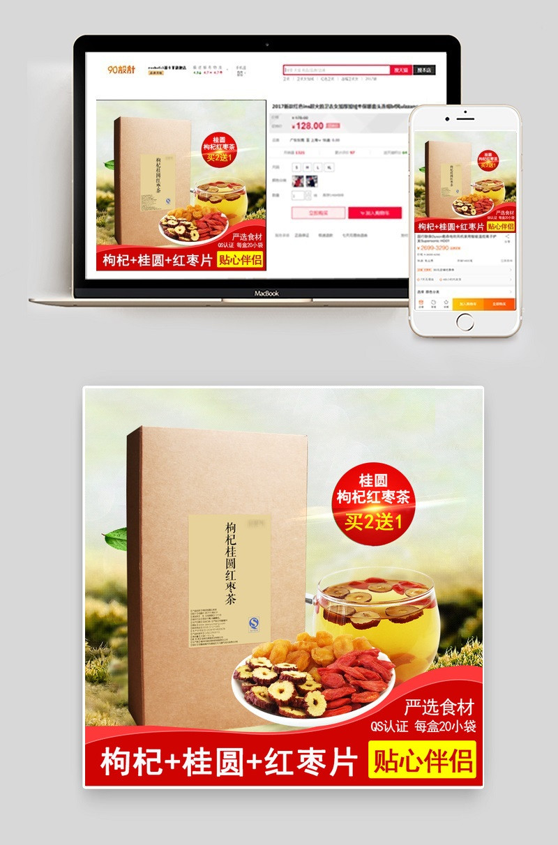 天猫主图 淘宝主图 红枣 枸杞 桂圆 茶叶主图 饮品 花草茶 叶子元素 草地元素