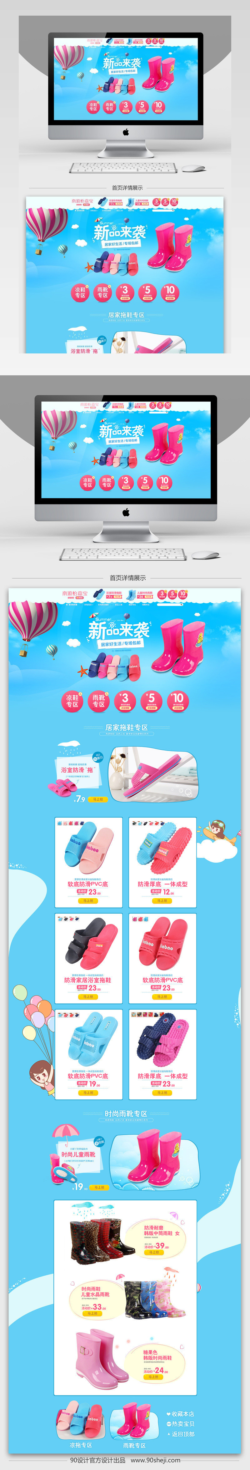 淘宝 天猫 蓝色 卡通 童鞋首页 雨鞋首页 雨靴首页 卡通首页 拖鞋首页 蓝色首页 儿童首页 母婴首页 热气球素材 蓝色背景
