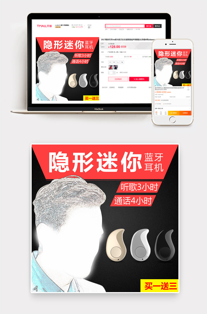 手机数码电脑办公主图迷你耳机主图