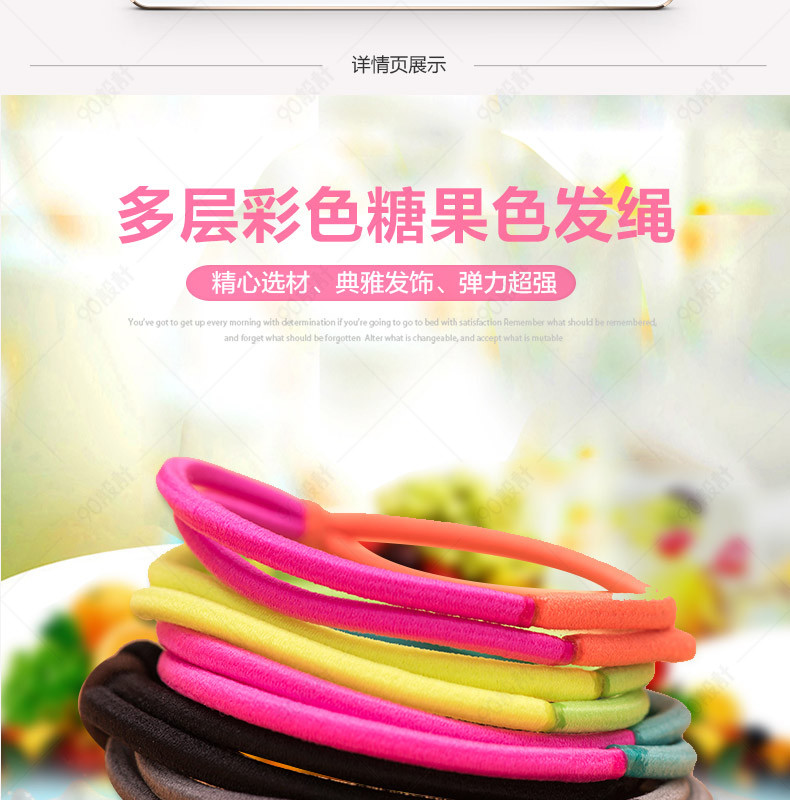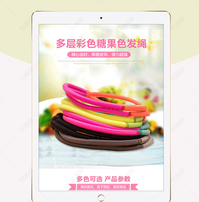 简约 饰品详情页 发圈详情页 彩色发圈 橡皮筋 头绳 束发带 植物背景 少女头饰 编织