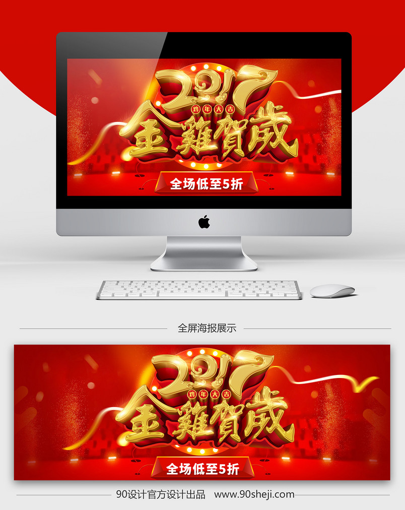 新年海报 全屏海报 鸡年海报psd源文件 淘宝天猫红色喜庆节日 新年喜庆优惠海报 全场底价促销 新年红色海报