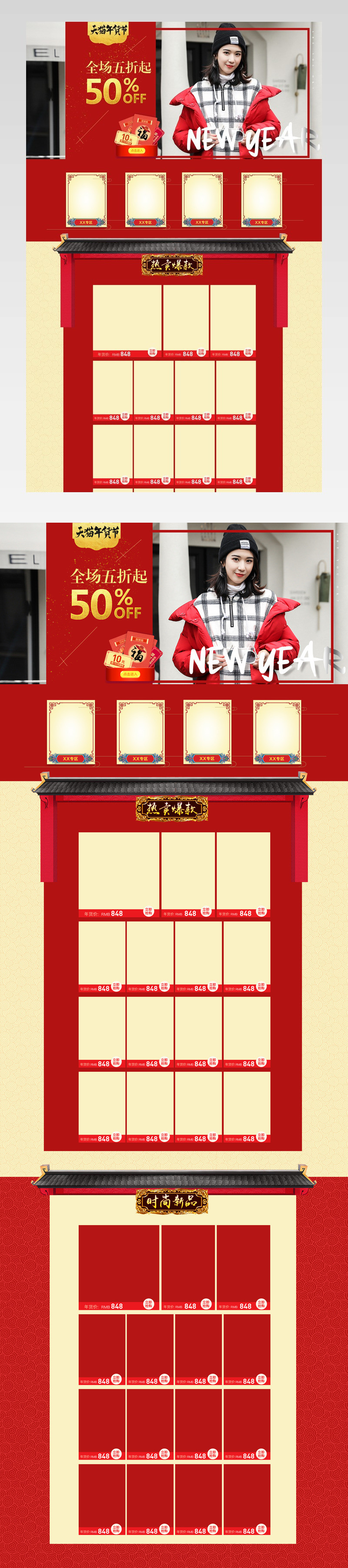 PC首页 首页装修 店铺首页 女装首页 唯美风 简约风 年货节 红色背景 冬季女装 毛呢大衣 外套 针织衫