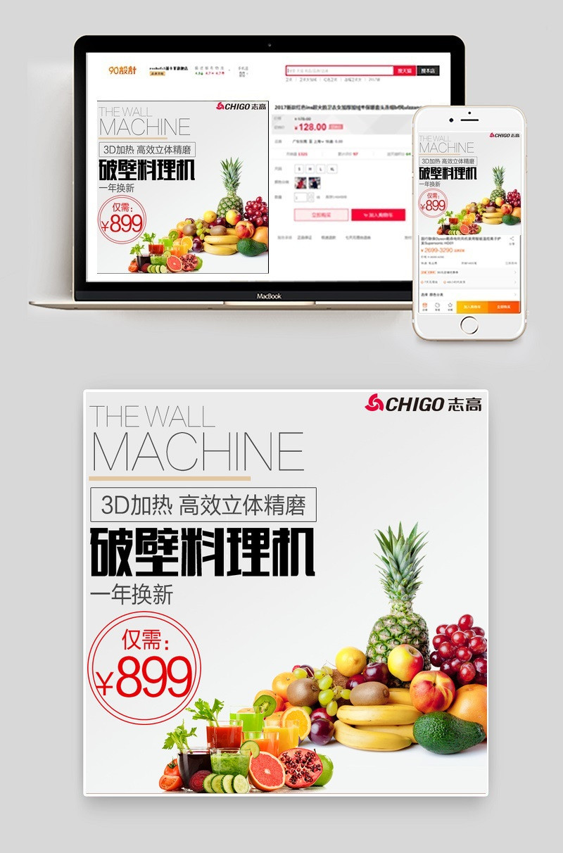 天猫 淘宝 破壁机主图直通车psd模板 水果 果蔬 破壁机主图 料理机主图 原汁机主图 榨汁机主图 生活电器主图 小家电主图 时尚简约风格 志高料理机