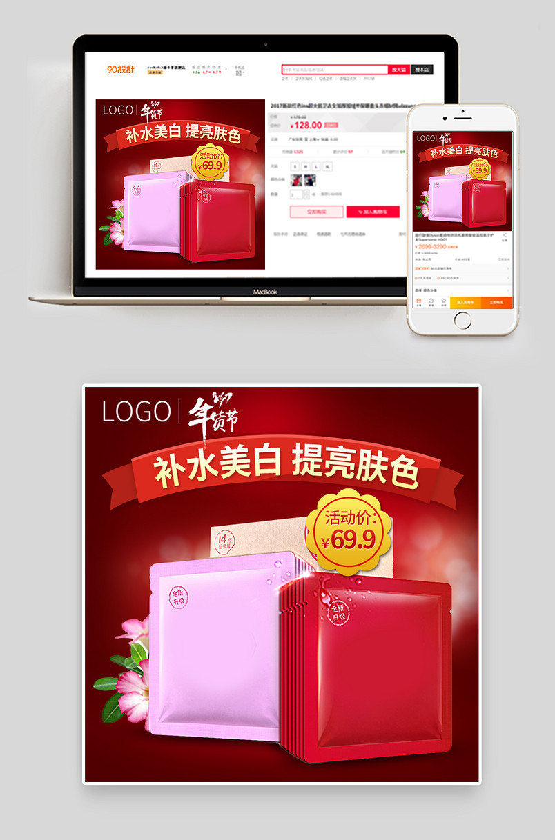 天猫淘宝年货节面膜主图直通车psd模板