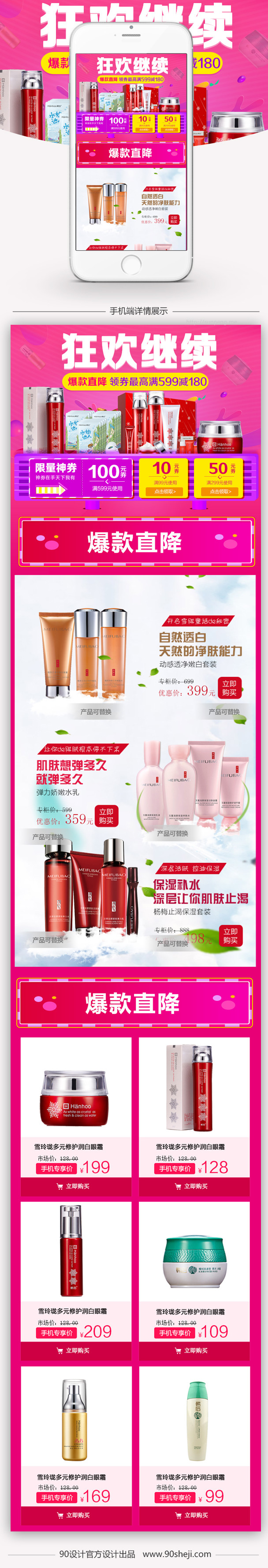 90设计提供粉色甜美风美妆手机端首页模板PSD设计素材下载,高清PSD格式。【通用】多类目可用,产品、模特均可替换。【PSD】精细分层,贴好片。【设计】由90设计师独家设计。点击右侧免费下载按钮可进行粉色甜美风美妆手机端首页模板PSD淘宝设计素材高速下载。