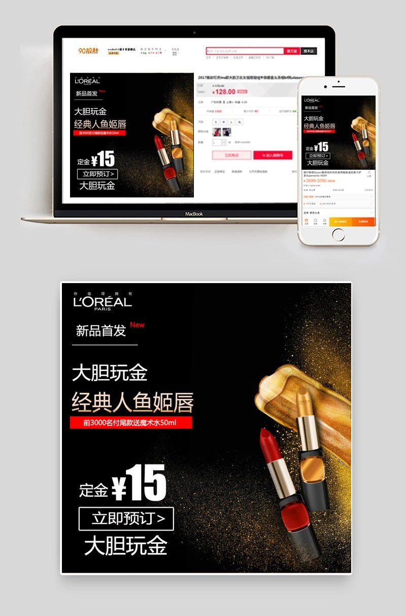时尚 大气 简洁 美妆 口红 主图 面膜 眼影 睫毛膏 光效 金粉