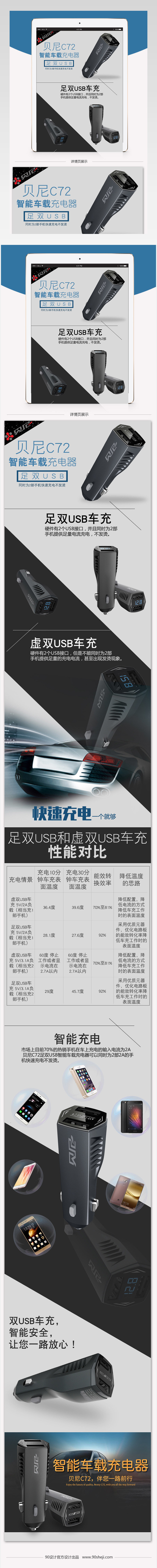 车载充电器详情页 智能充电器详情页 数码3C产品详情页 汽车用品详情页 汽车配件详情页 快速充电 足双USB车充 简约风 psd模板 淘宝天猫详情页 汽车配件用品