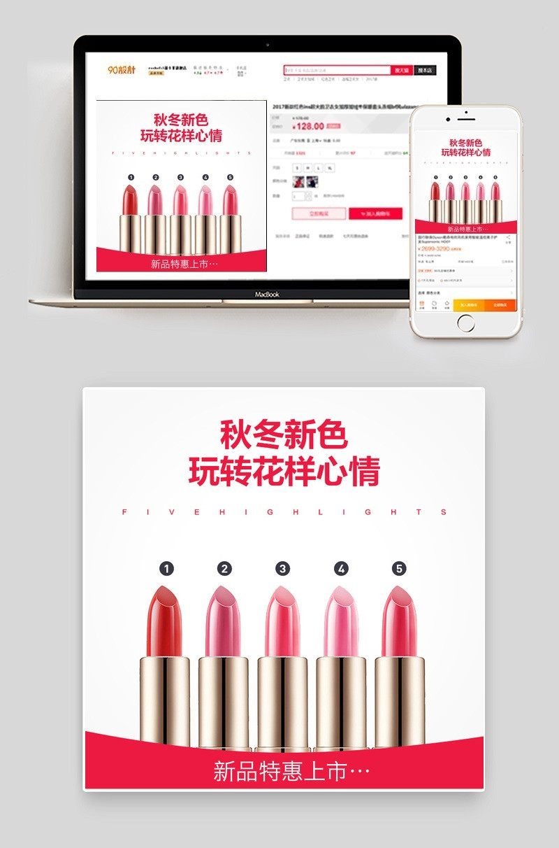 大气 简洁 时尚 美妆 口红 主图 润唇膏 唇彩 面霜 手绘 纯色背景