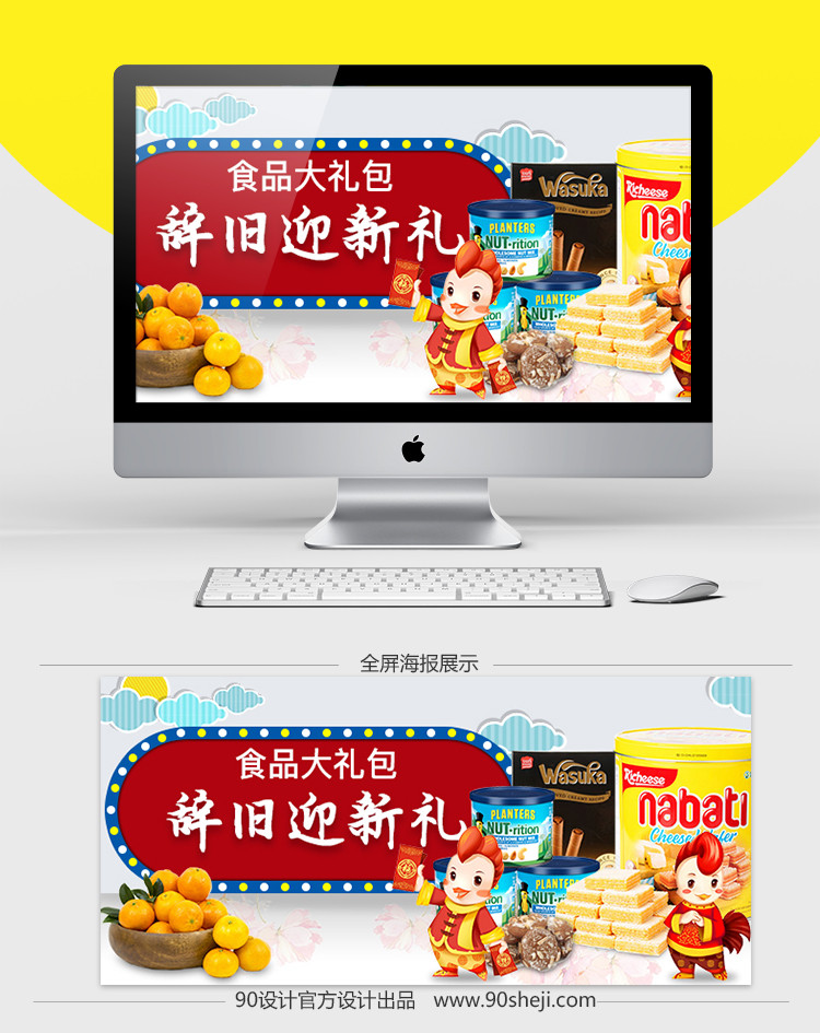天猫 食品 新年 鸡年 2017年 banner 海报 大礼包 零食 新年 饼干 水果 橘子 拜年