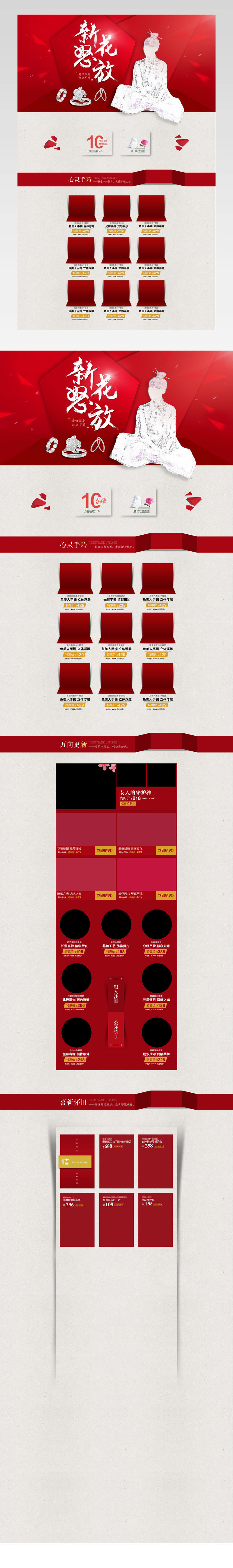 PC端首页 店铺首页 首页装修 饰物首页 简约风 清新风 红色背景 饰物 戒指 项链 手镯