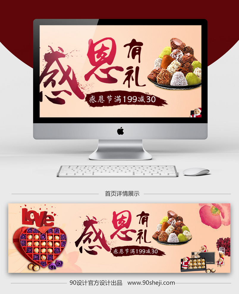 全屏海报 banner 海报 零食海报 简约风 清新风 糖果 糕点 巧克力 感恩节
