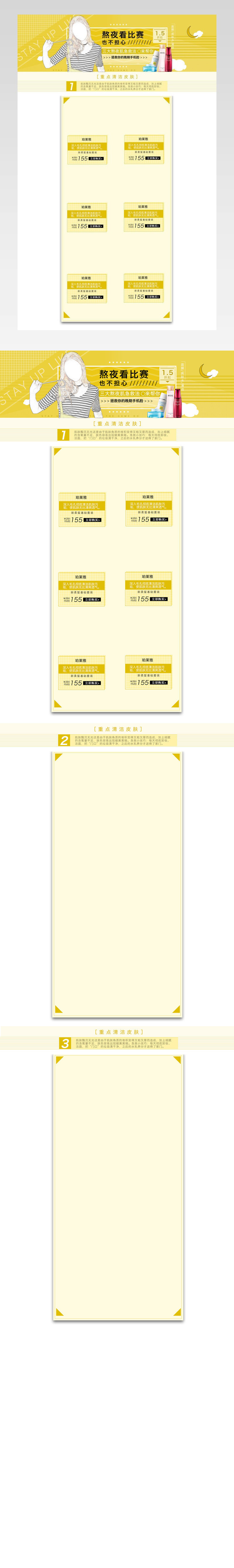 淘宝 天猫 首页装修 PSD模板 黄色背景 护肤品 矢量图模板 化妆品 简洁背景 王从美