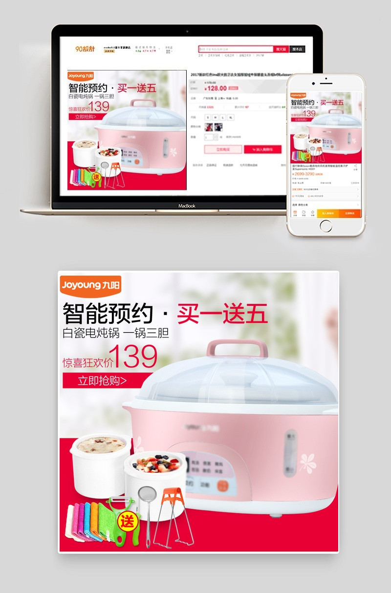 简约 时尚 清新 生活电器 电炖锅 主图 电磁炉 微波炉 电烤炉 纯色块