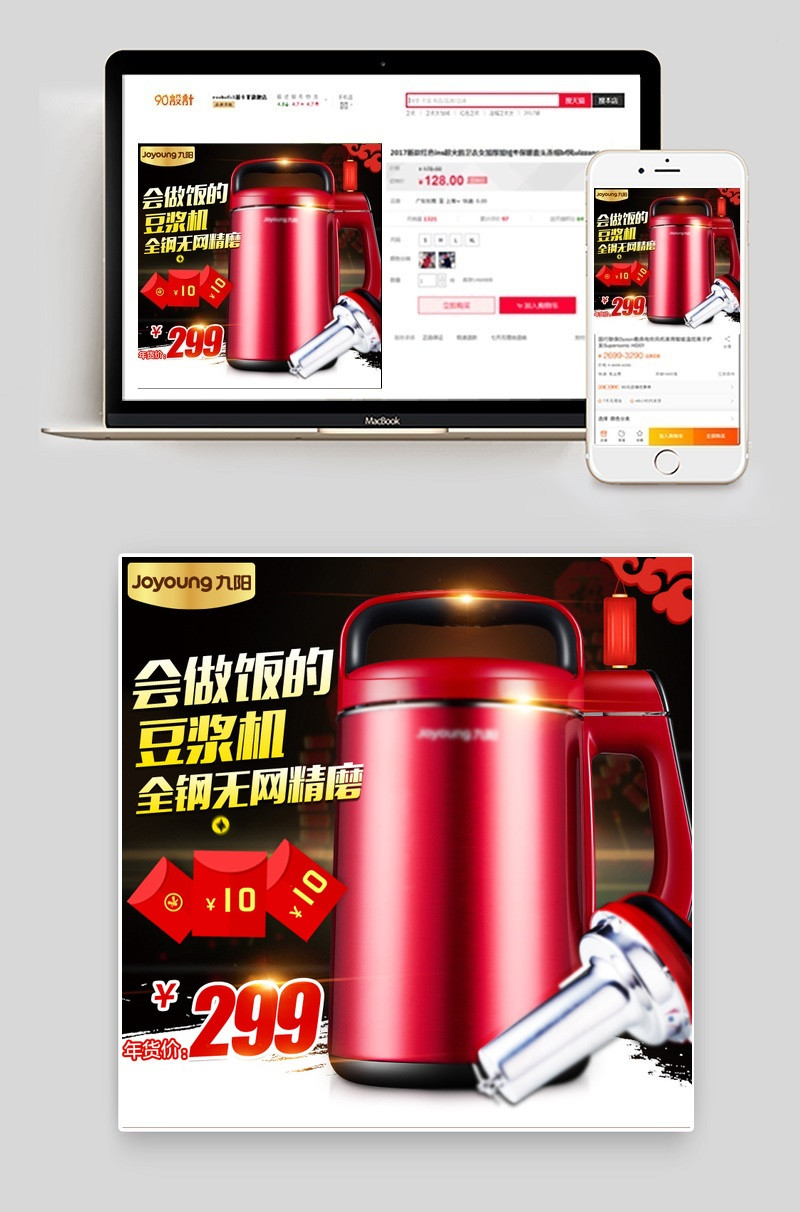 大气 简约 简洁 生活电器 豆浆机 主图 榨汁机 料理机 养生壶 渐变 红包 光效