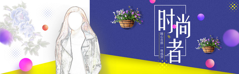 淘宝天猫 女装海报 轮播图 banner PSD模版 花 模特 球 漂浮 色块背景 加载中…
