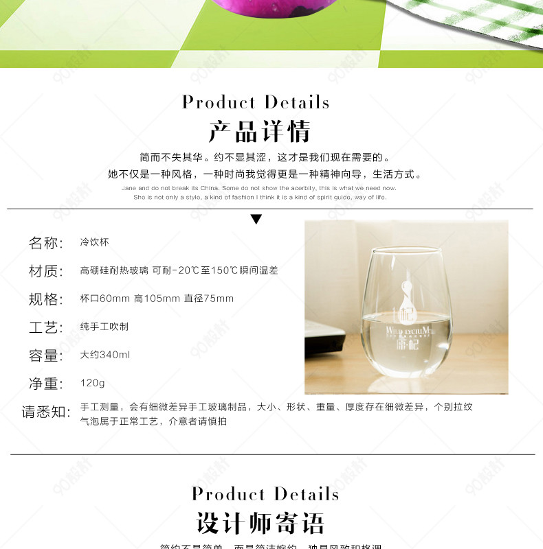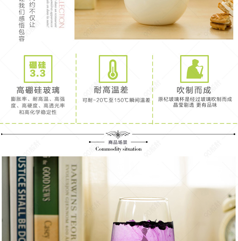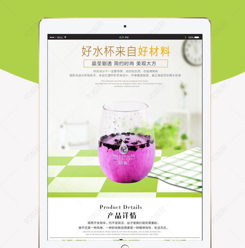 厨具详情页 厨具介绍页面 水杯详情页 水杯介绍 玻璃杯 马克杯 咖啡杯 简约 大气 清新 绿色 将康 环保 家居背景