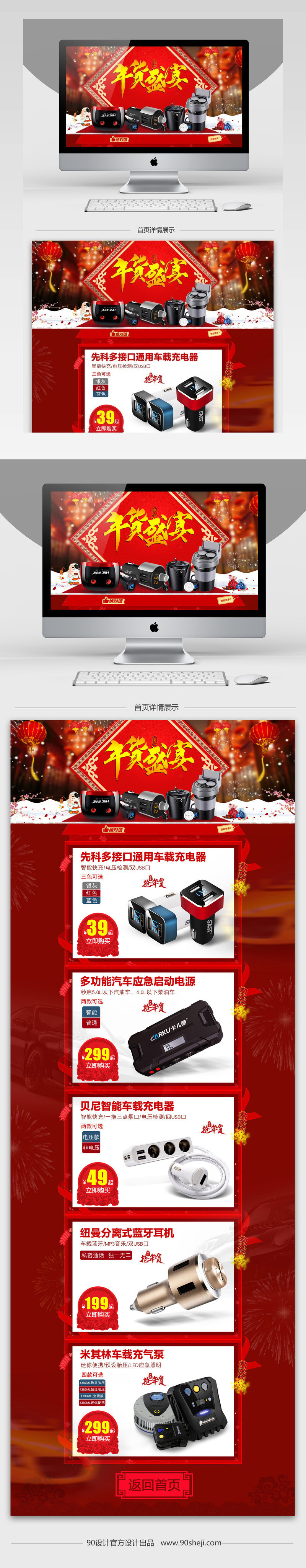 90设计提供年货节喜庆风汽车用品PC端首页psd模板设计素材下载,高清PSD格式。【通用】多类目可用,产品、模特均可替换。【PSD】精细分层,贴好片。【设计】由90设计师独家设计。点击右侧免费下载按钮可进行年货节喜庆风汽车用品PC端首页psd模板淘宝设计素材高速下载。