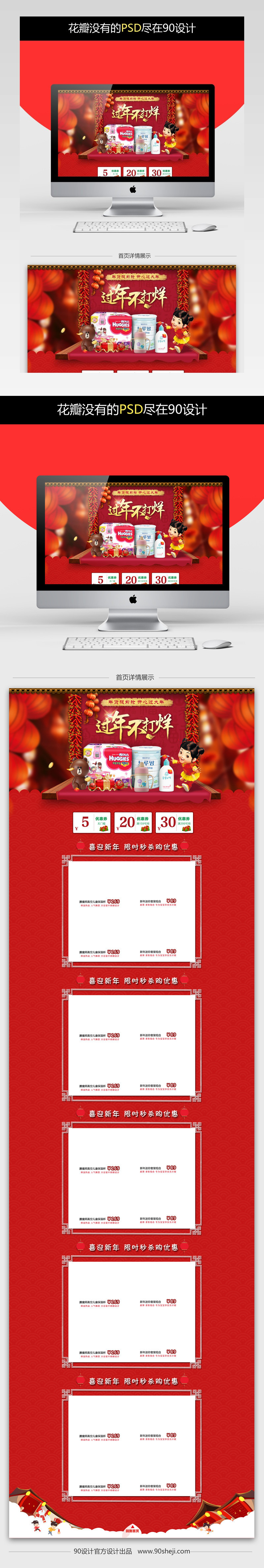 淘宝天猫红色新年年货节母婴psd模板
