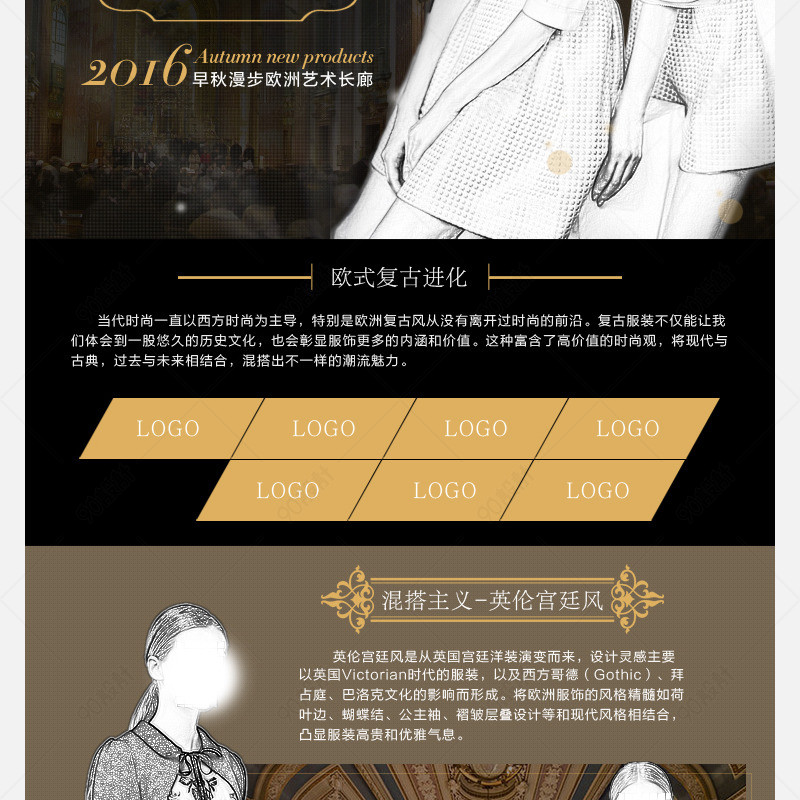 90设计提供欧美复古风时尚女装店铺首页模版设计素材下载,高清PSD格式。【通用】多类目可用,产品、模特均可替换。【PSD】精细分层,贴好片。【设计】由90设计师独家设计。点击右侧免费下载按钮可进行欧美复古风时尚女装店铺首页模版淘宝设计素材高速下载。