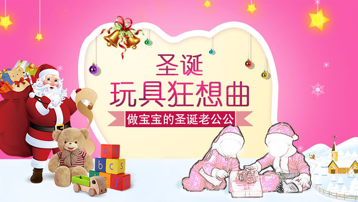 圣诞节 儿童玩具 宝宝 玩具 圣诞玩具狂想曲 粉色圣诞节海报 圣诞儿童节全屏海报 粉色浪漫节海报