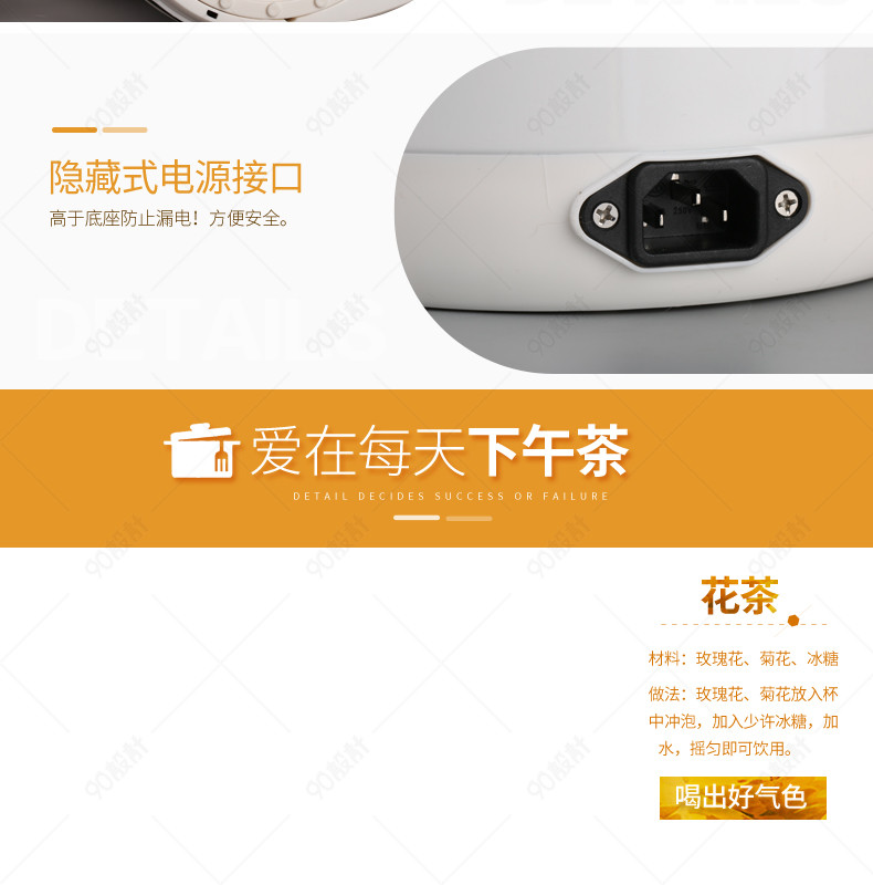 90设计提供清新生活电器热水壶详情页psd模板设计素材下载,高清PSD格式。【通用】多类目可用,产品、模特均可替换。【PSD】精细分层,贴好片。【设计】由90设计师独家设计。点击右侧免费下载按钮可进行清新生活电器热水壶详情页psd模板淘宝设计素材高速下载。