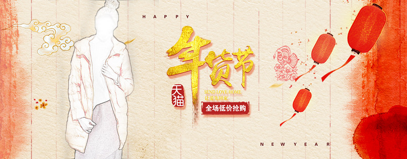 天猫 海报 年货节 抢年货 女装 女装海报 欧美 欧美风 羽绒服 外套 中国风海报 左耳 喜庆元素 文艺风 红色系列 女装首页模板 棉衣首页模板 大衣首页全屏模板 长裙 衬衫 背带裤 年货节 线条 简约风格 优惠低价 优惠促销 节日狂欢