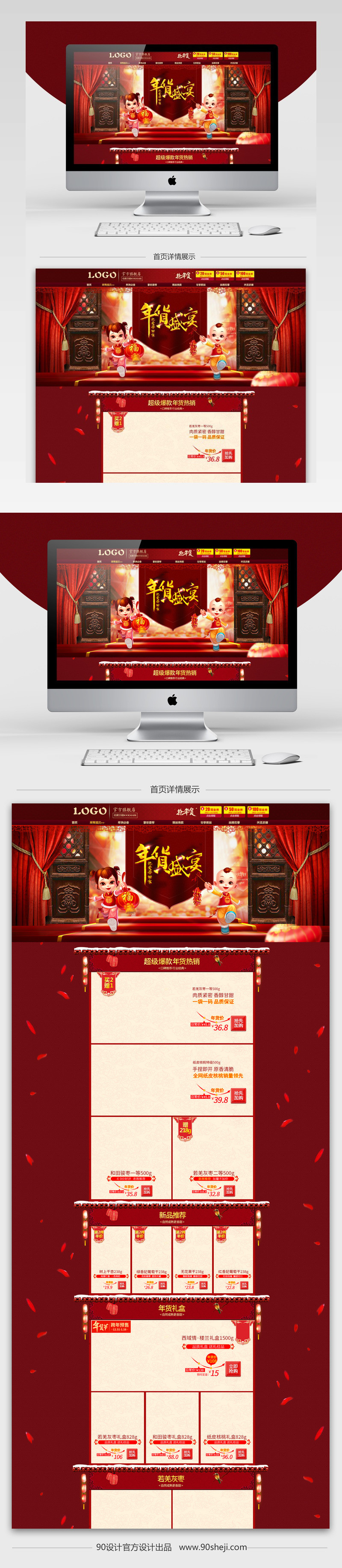 PC端首页 店铺首页 首页装修 食品首页 中国风 年货节 促销 零食 坚果 核桃 杏仁 红枣