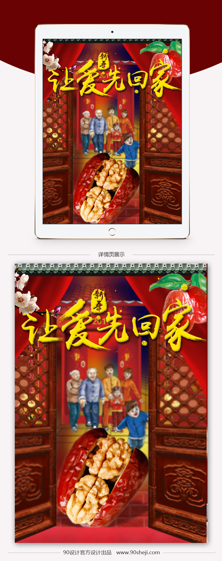 banner 海报 零食海报 手机端海报 中国风 新年促销 坚果 核桃 杏仁 红枣