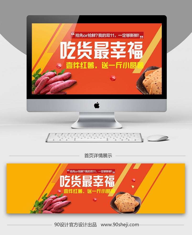 淘宝 天猫 零食 海报 PSD分层黄色背景 小清新 饼干 红薯 粗粮 双11 活动 促销 吃货