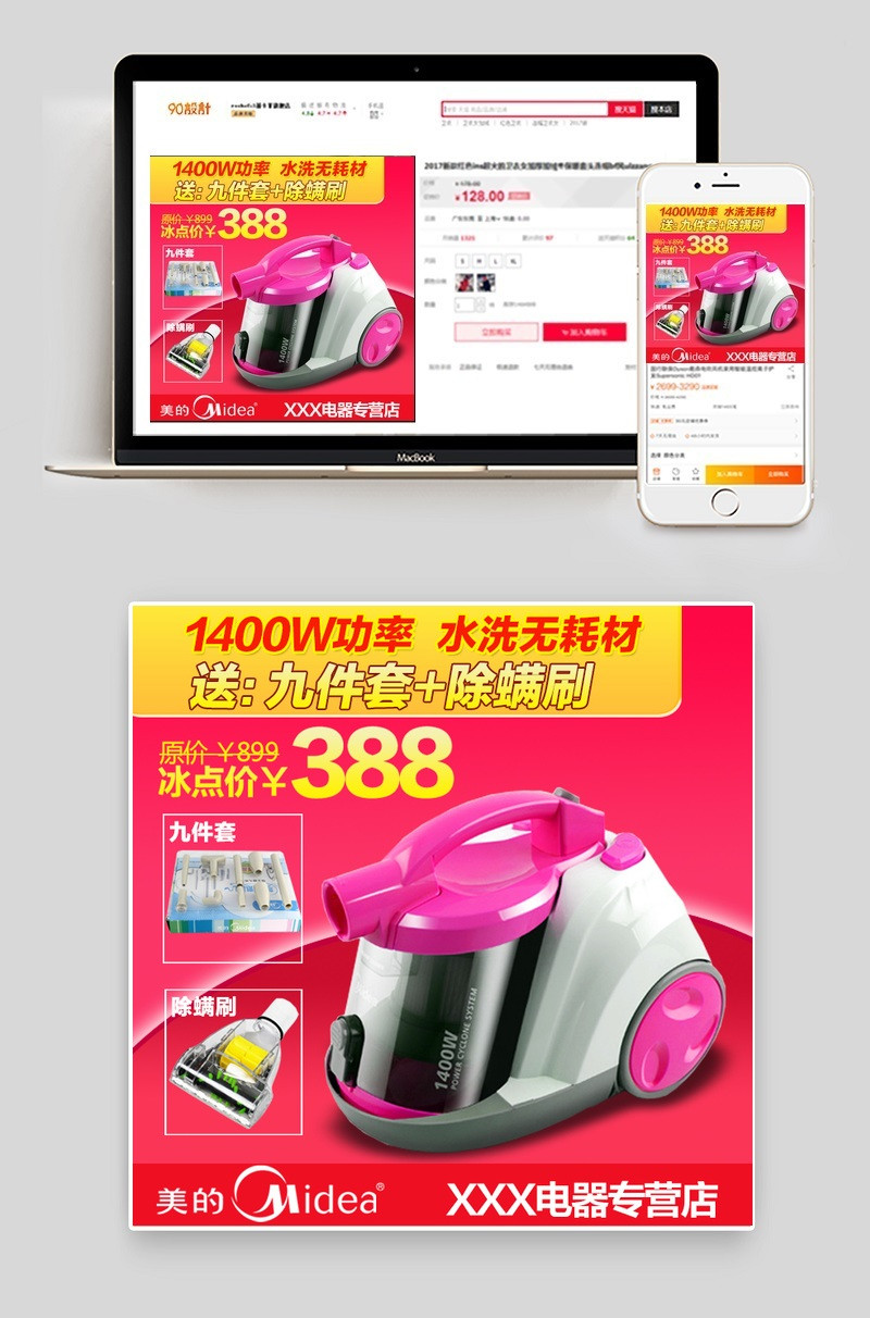 吸尘器 除尘器 除螨仪 红色背景 简约风 买就送 生活电器 主图 直通车 psd模板