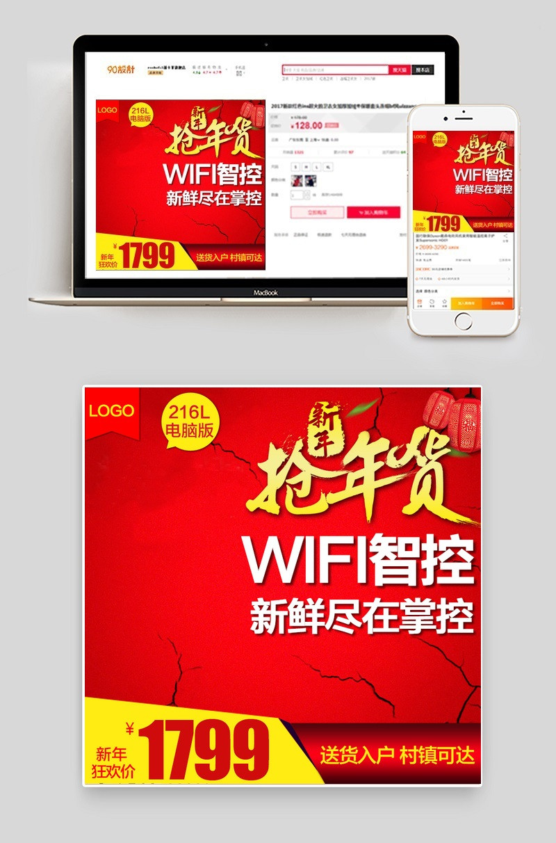红色背景 喜庆风 抢年货 大家电 生活电器 通用模板 狂欢价