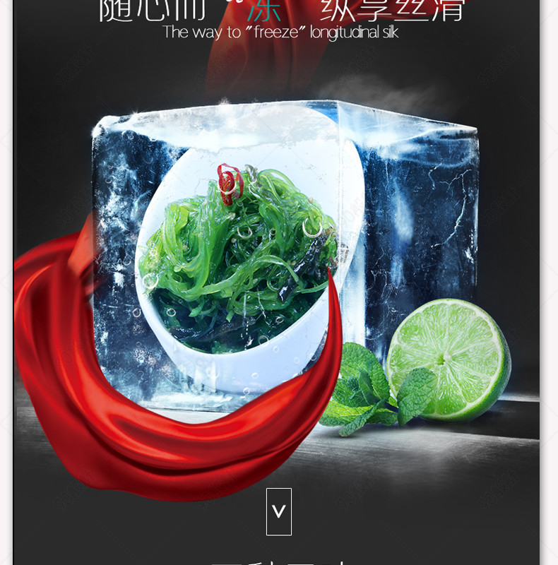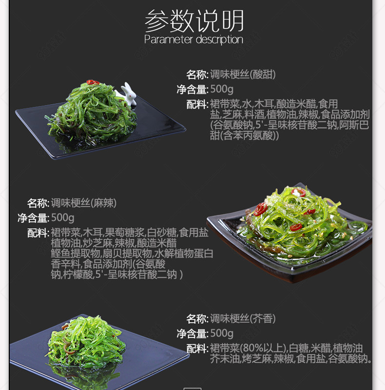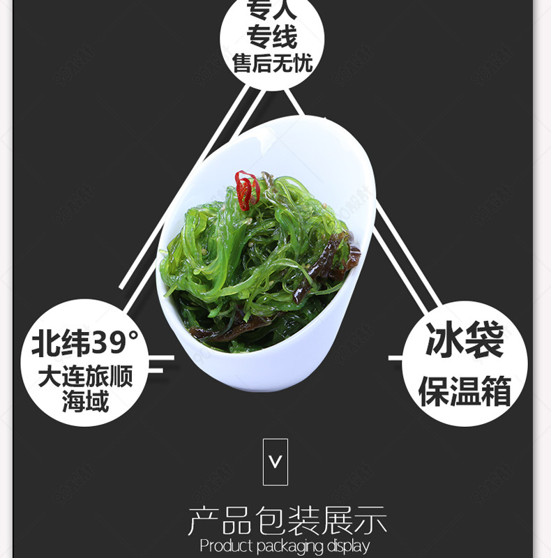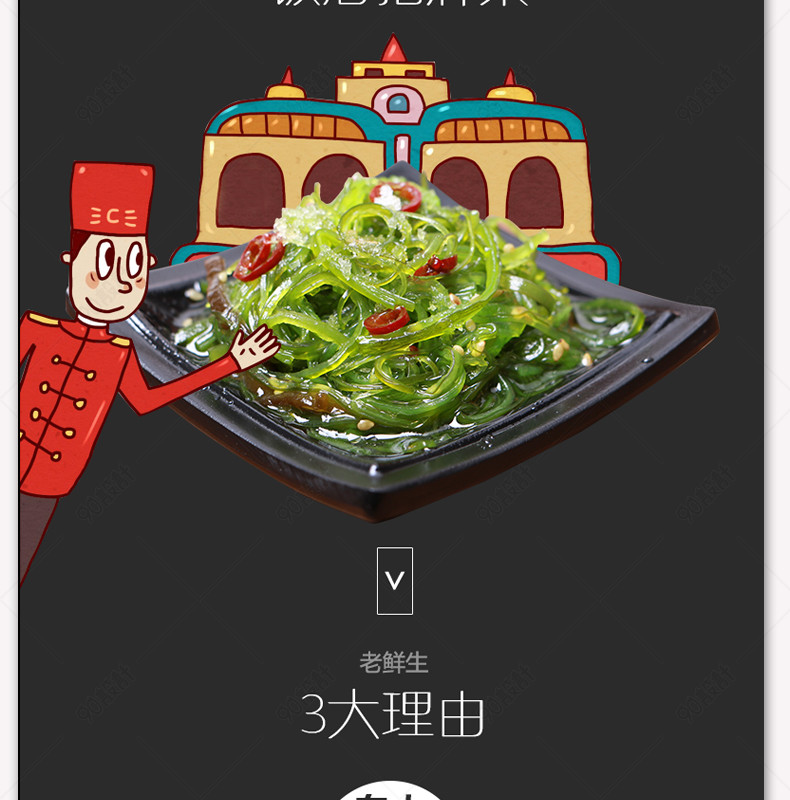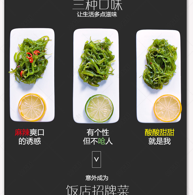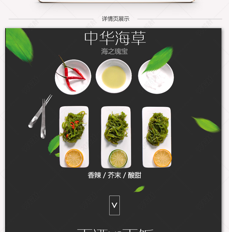 天猫淘宝 宝贝详情 爆款 海藻 裙带菜 冰镇 黑色背景 大气 小菜 食物 小菜详情页