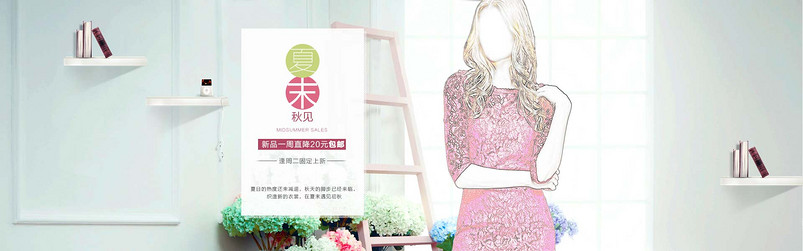 时尚家居背景 夏末 淘宝天猫 红色衣服 国外模特 书本 全屏海报psd 优雅女装psd模板 回忆想起了曾经