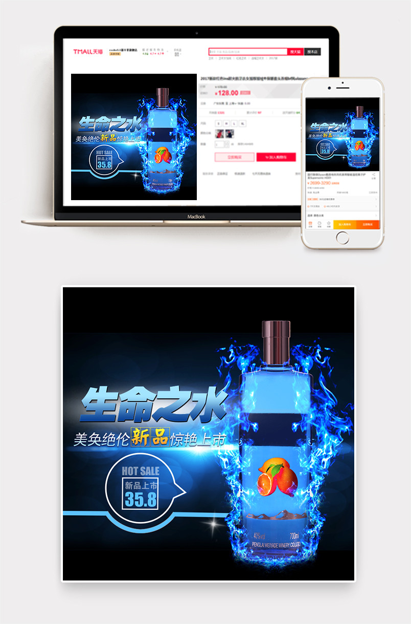 促销 直通车 主图 酒类主图 炫酷风 简约风 蓝色火焰 洋酒 预调酒