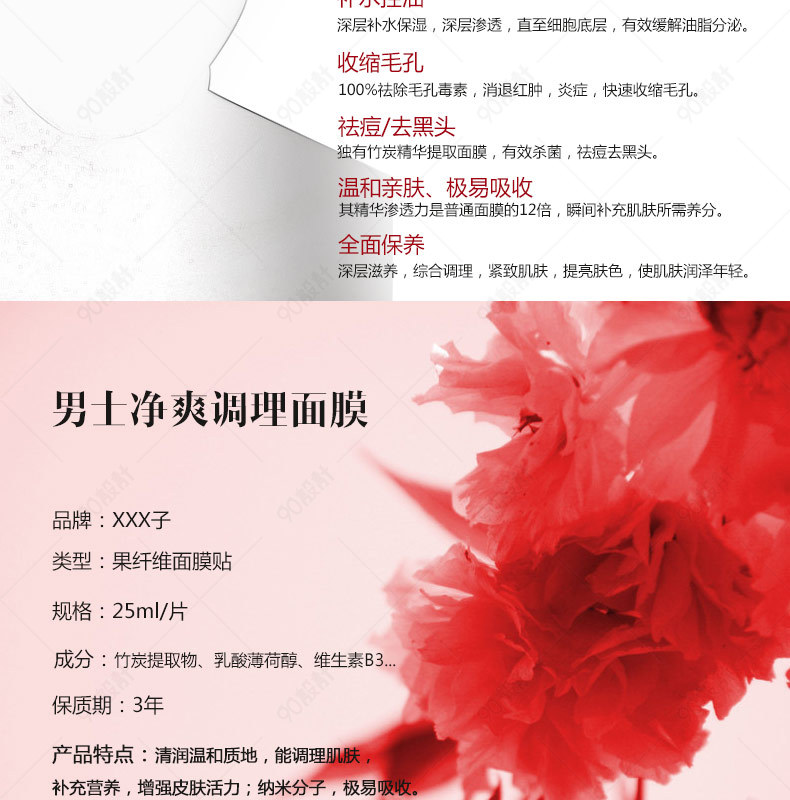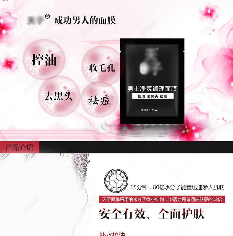 天猫 淘宝 男士护肤品 男士面膜详情页 详情页 男士面膜 面霜 护手霜 控油 祛痘 气泡 艺术字体 花瓣