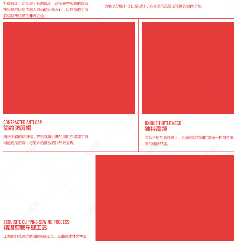 春节 红色背景 简约 时尚 男装详情页 大衣详情页 风衣 保暖外套 长款外套 黄色字