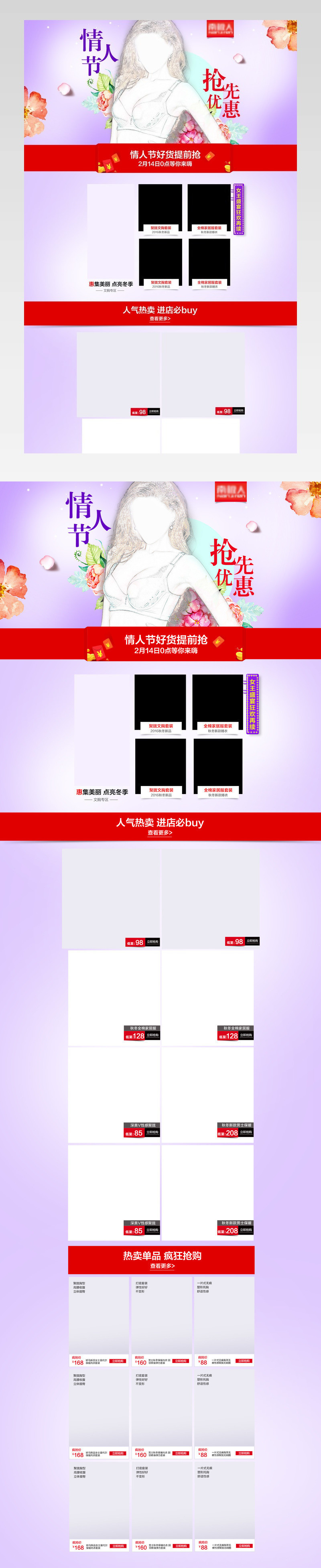 清新唯美风情人节女装内衣店铺首页模版